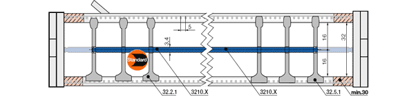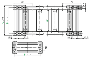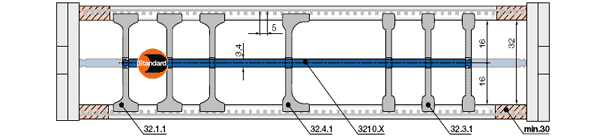 Seria E4.32AG - prowadnik, otwieranie zatrzaskowe wzdłuż obu stron z listwami poprzecznymi na każdym ogniwie