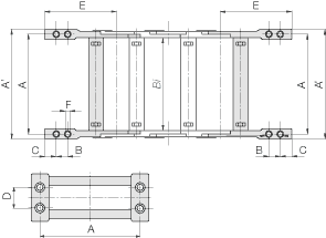 Seria 22 - prowadnik z listwami poprzecznymi na każdym ogniwie