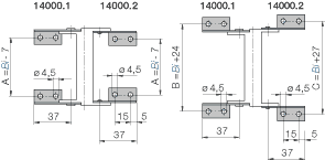 Dostępne szerokości wewnętrzne Bi: 15 do 80 mm