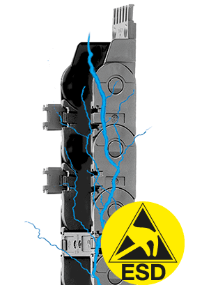 Seria 1500 z ochroną przed wyładowaniami elektrostatycznymi (ESD) - prowadnik, otwieranie zatrzaskowe wzdłuż promienia zewnętrznego