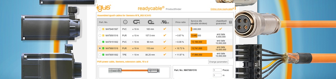 Wyszukiwarka produktów readycable® z bezpośrednim obliczaniem żywotności online dla wybranych przewodów napędowych