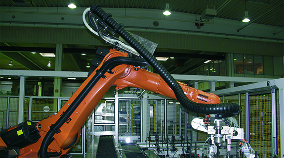The number of freely hanging cables should be bundled together. The specific movements executed by the robot stress the energy cables to a high degree.