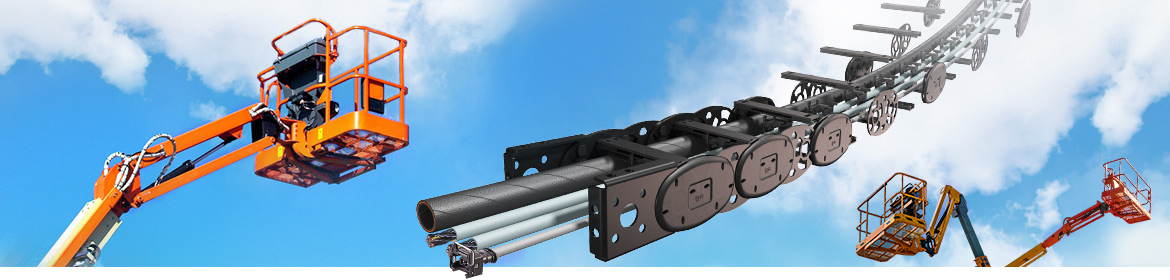 Przewody zasilania, danych i mediów oraz węże muszą być bezpiecznie prowadzone na teleskopowych platformach roboczych. e-prowadniki firmy igus zapewniają specjalną ochronę przewodów nie tylko przed wpływami zewnętrznymi, ale także przed zużyciem, które występuje podczas cyklicznego składania i wysuwania ramion teleskopowych przy różnych szybkościach podnoszenia.