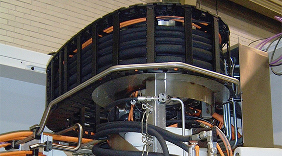 Low-maintenance cable guidance in CNC grinding machines, encountering oil and chips