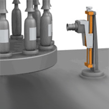 Zastosowanie w przemyśle szklarskim. Regulacja formatu na przenośniku w celu oddzielenia butelek.