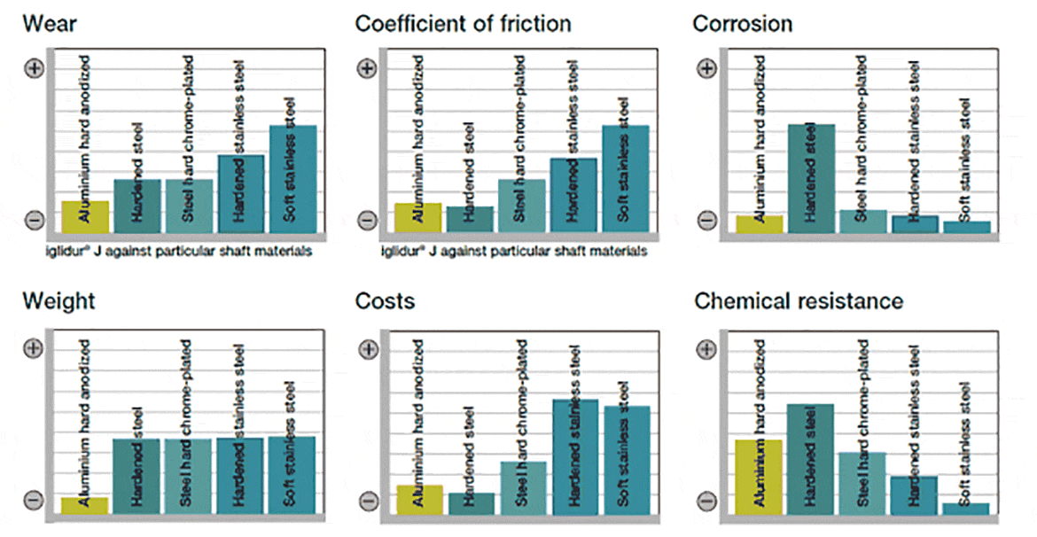 Niższy współczynnik tarcia w stosunku do łożysk z tworzywa sztucznego
