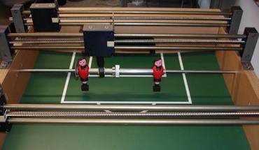 As part of his diploma thesis, Peter Rohde is constructing a soccer table in which the opponent is a fully automated computer. The table shows the possibilities of sophisticated automation and highly qualified control technology.