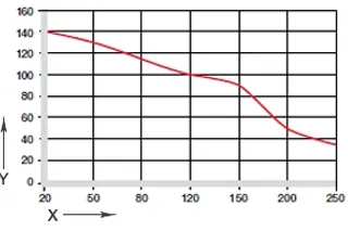 Maksymalny zalecany nacisk powierzchniowy jest parametrem mechanicznym materiału. Na tej podstawie nie można wyciągać wniosków na temat trybologii. Wytrzymałość na ściskanie łożysk iglidur® UW500 maleje wraz ze wzrostem temperatury. wykres. 02 ilustruje tę zależność.